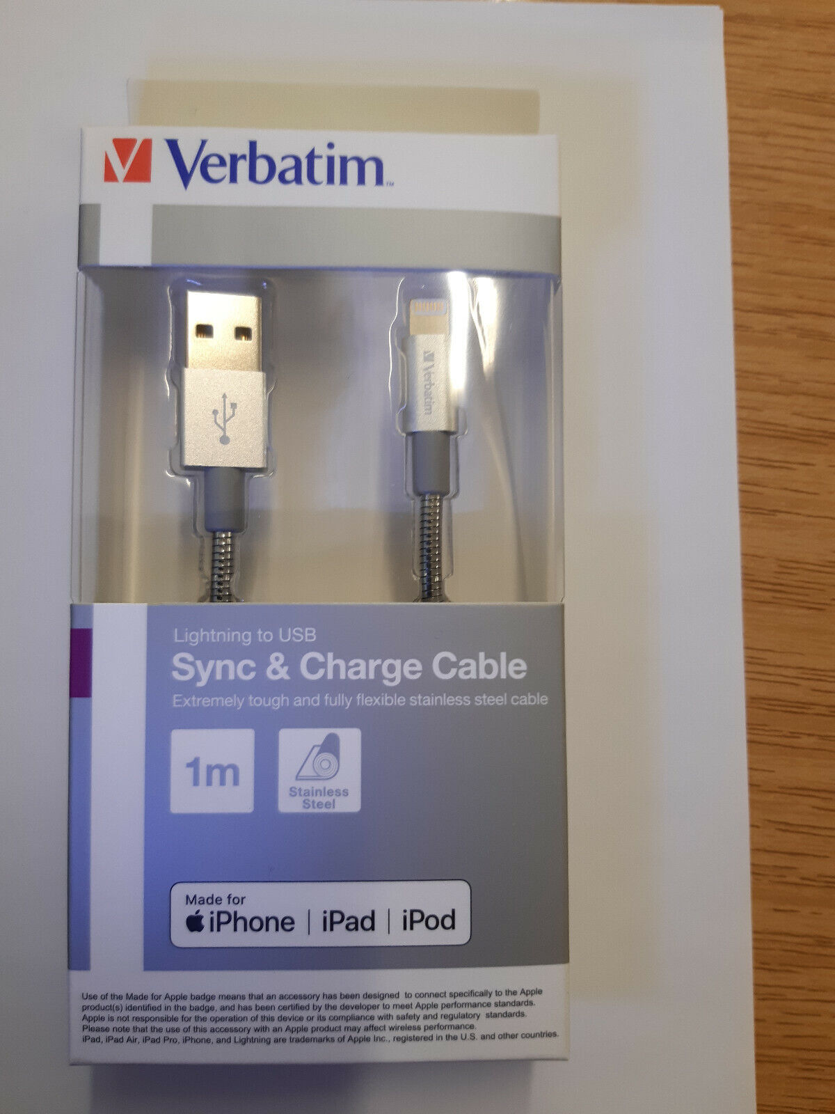 Verbatim Apple Lightning Sync and Charge Cable 100cm Stainless Steel BNIB